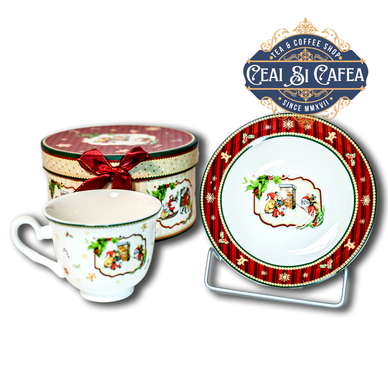Ceasca cu farfurioara de portelan MOS CRACIUN LA HORNUL CASEI - 180ml