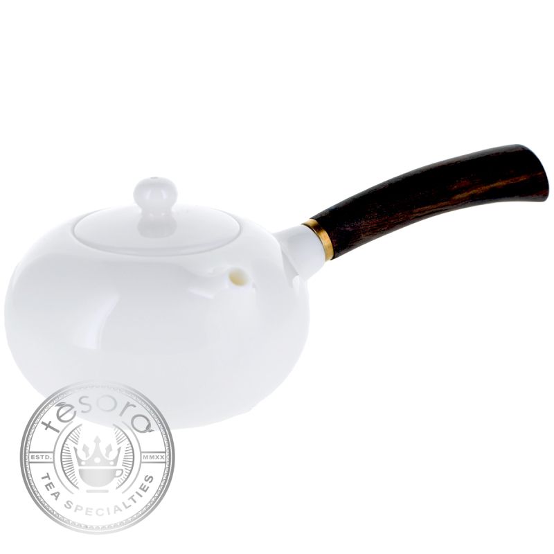 Ceainic din porțelan alb cu mâner lateral din lemn de salcie – CE BA HU „Yangzhi Hu” (Ramura de Salcie) – 0,6 L