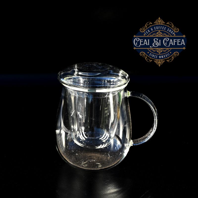 Cabna cu sita si capac, de sticla termorezistenta - 350ml