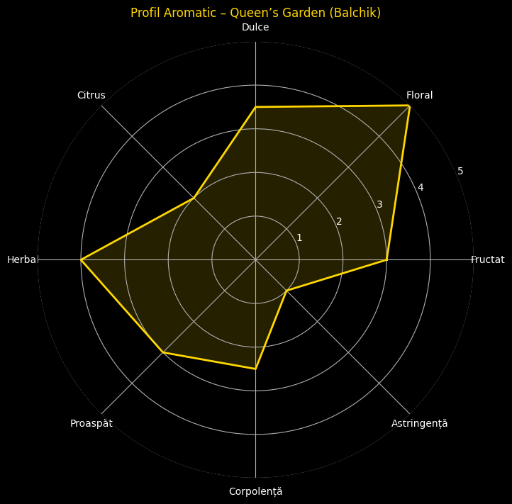 Queen’s Garden – Balchik White Tea este un blend elegant, construit în jurul fineții ceaiului alb, îmbogățit cu flori și plante atent selecționate pentru echilibru și liniște.