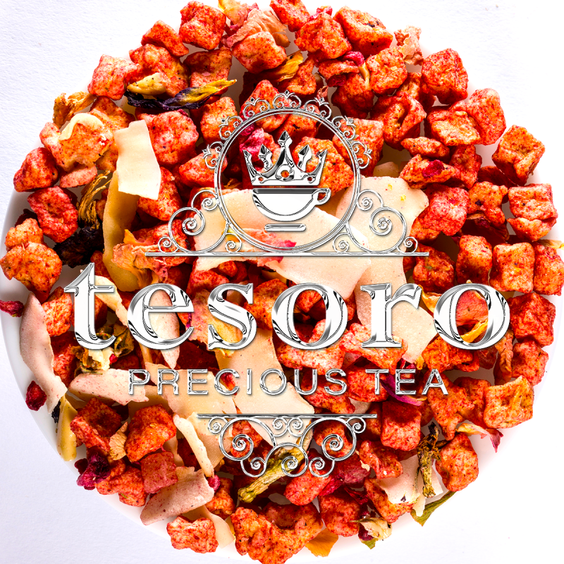 Un ceai roz, fermecător, cu note cremoase de ciocolată albă, zmeură dulce și accente tropicale delicate.